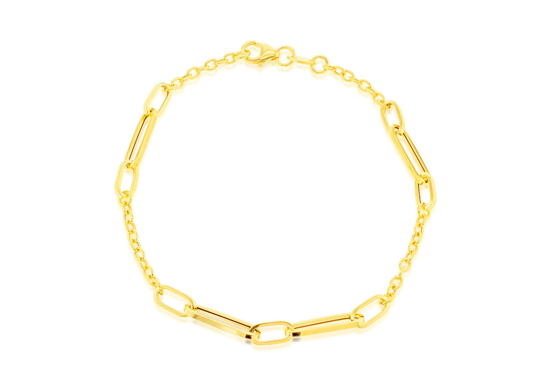 9K Yellow Gold Long Open Link Station Bracelet 19 cm