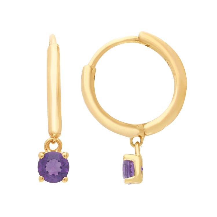 Purple Amethyst Huggie Earrings 9K Yellow Gold