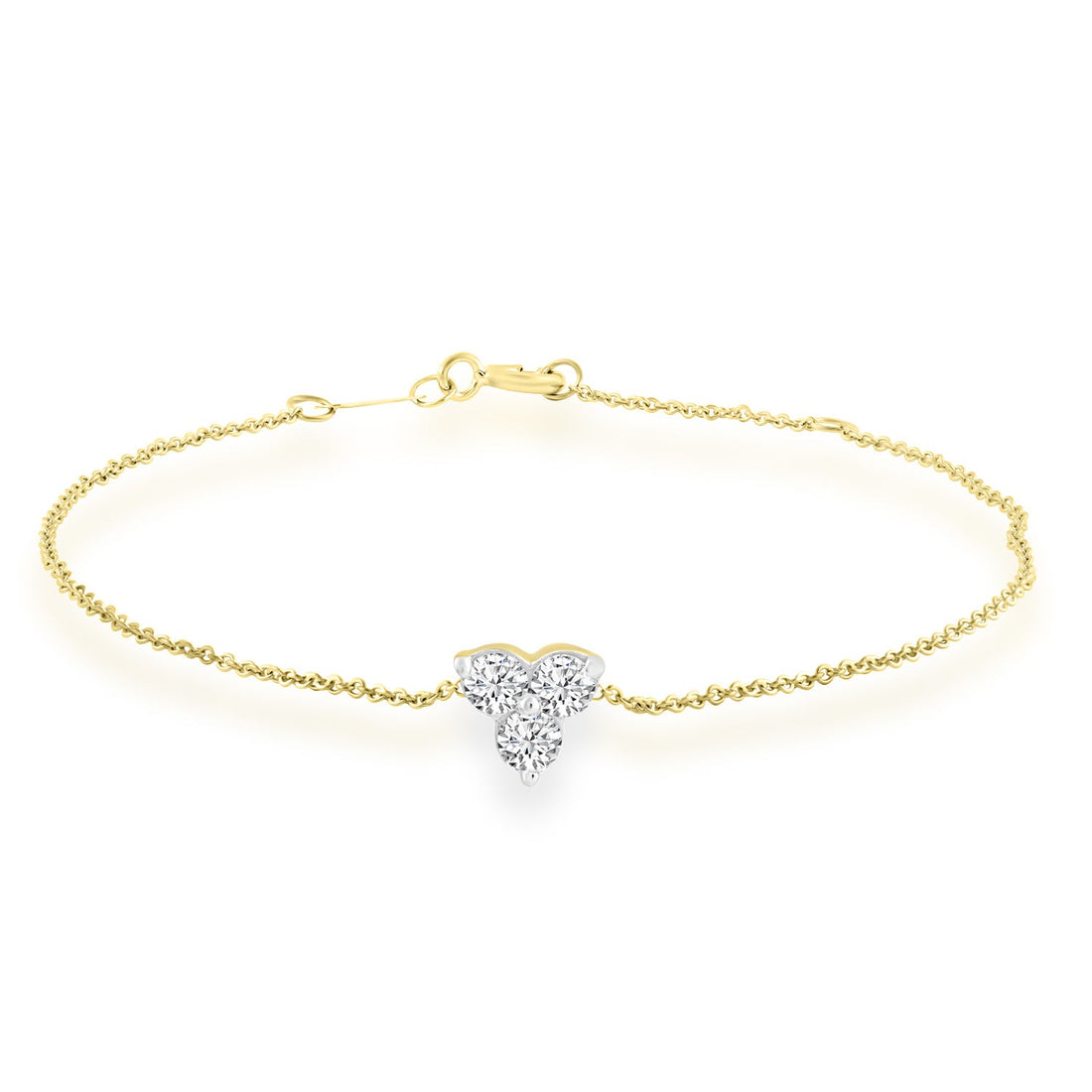 Simply irresistible, this stunning Yellow gold diamond Bracelet is made up of 3 diamonds, a...