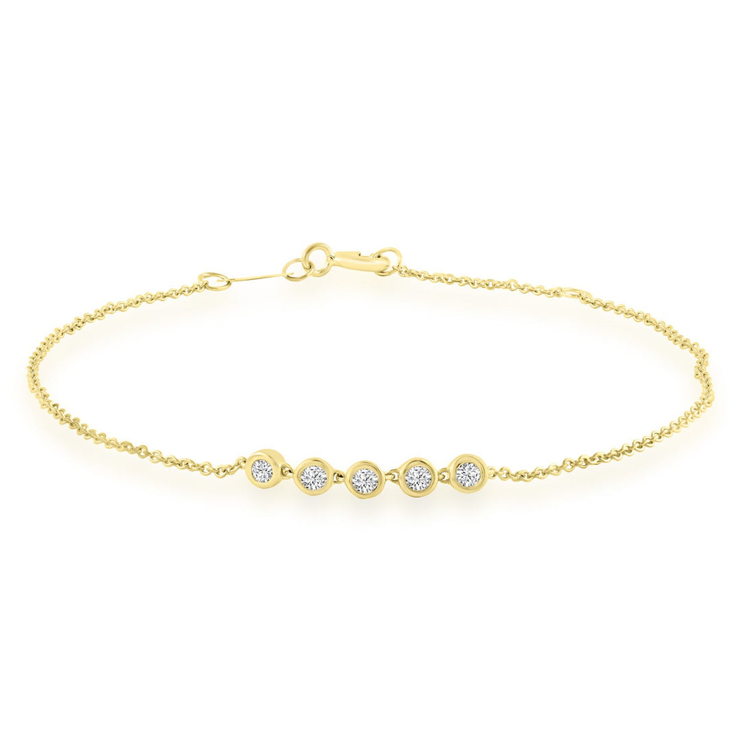 Simply irresistible, this stunning Yellow gold diamond Bracelet is made up of 5 diamonds, a...