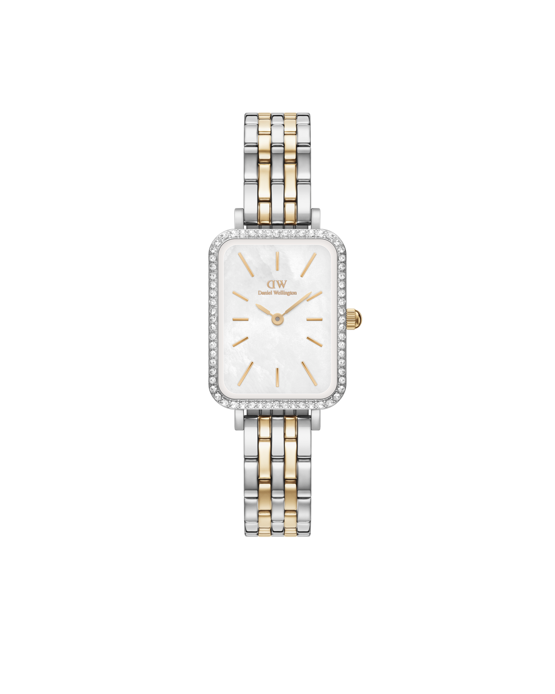 Daniel Wellington Quadro 20x26 Bezel 5-Link White Mother of Pearl Two-Tone Gold & Silver Watch