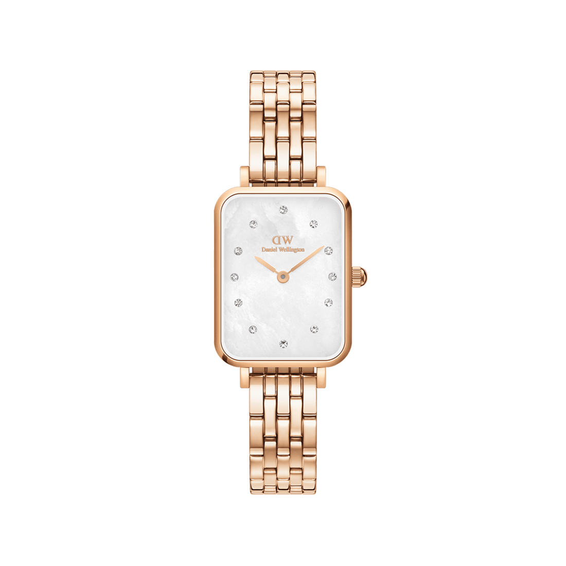 Daniel Wellington Quadro Lumine 20x26 5-Link Rose Gold & Mother of Pearl White Watch
