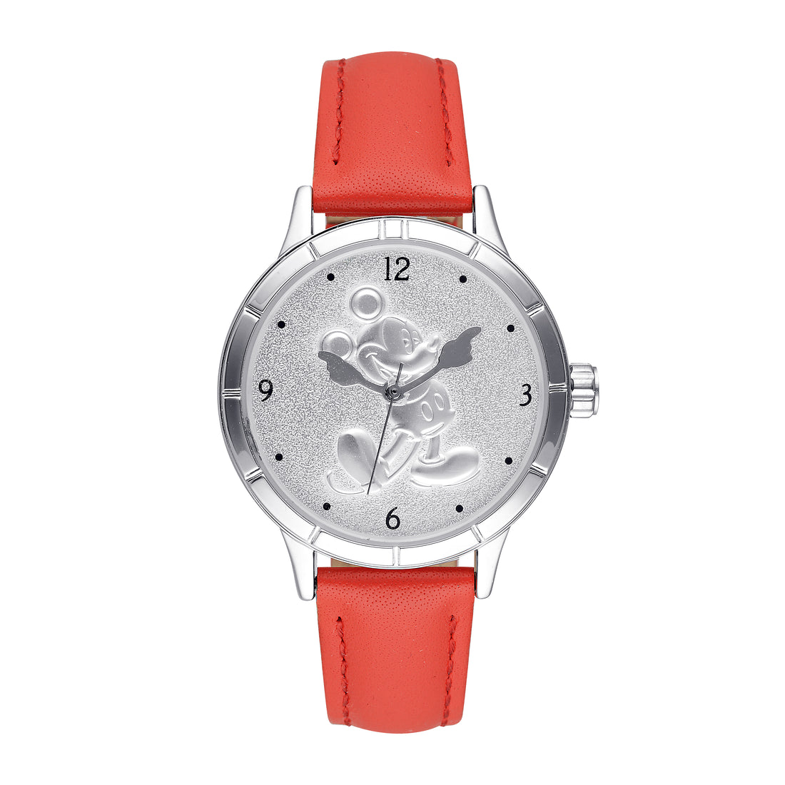 Disney Disney Mickey's 90th Sculpted Silver Dial Red Leaather Strap Watch