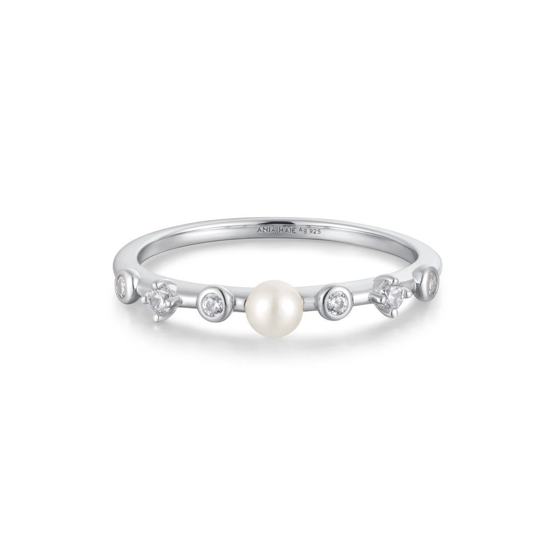 Ania Haie Silver Freshwater Pearl and White Cubic Zirconia Bezel Set Ring