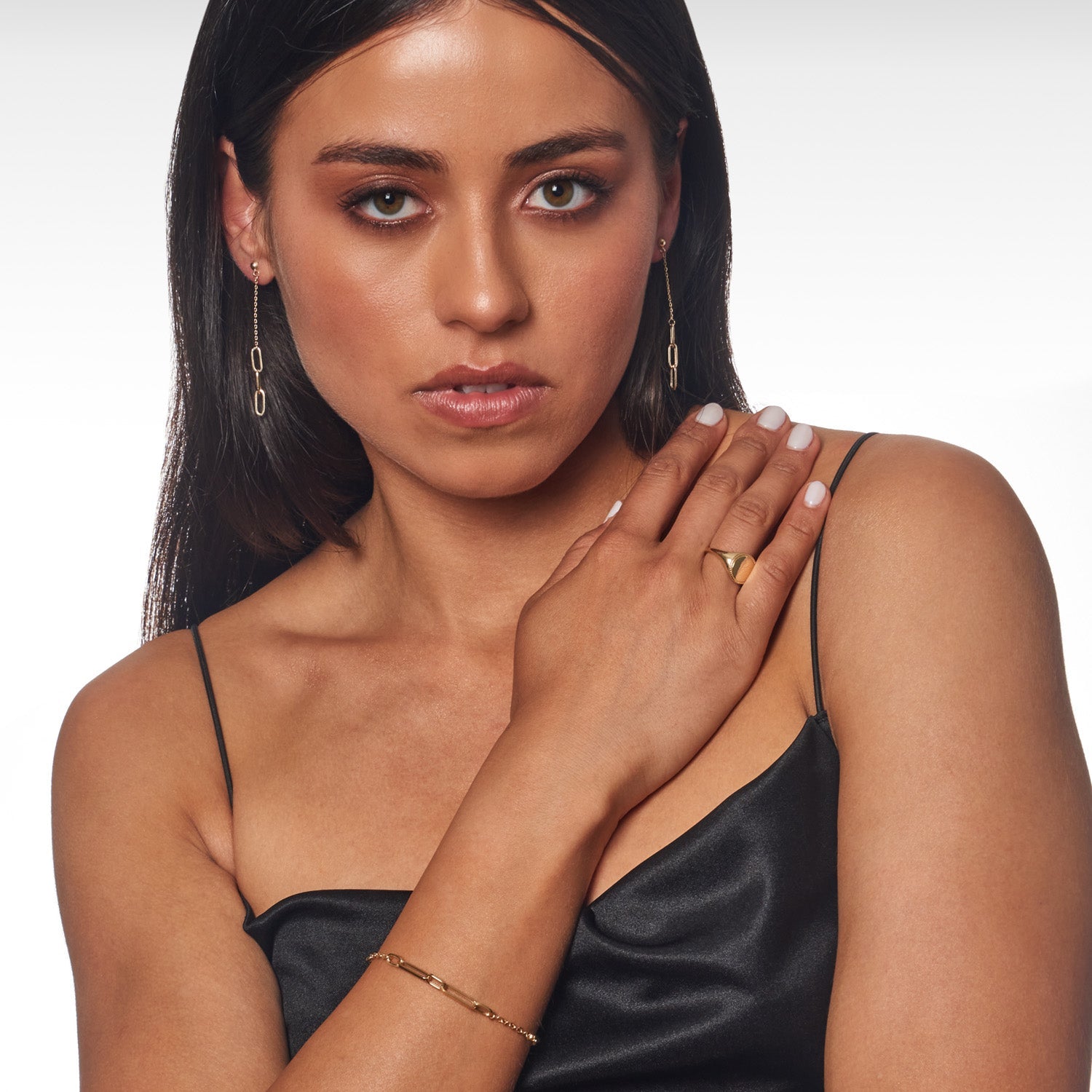 This 9K Yellow Gold Long Open Link Station Bracelet 19 cm is the true pick of the bunch. Pair this with a matching gold jewellery set for a stylish and contemporary look.
