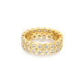 Set with double rows of glittering cubic zirconia in 14kt gold-plated sterling silver, the stunning piece is sure to make a statement in any ring stack. Wear it alone or stacked with other pieces to create stunning styles.