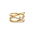 The ultimate ring for the season ahead. This chunky, layered ring features a teardrop-shaped design at the centre and is surrounded by a band of cubic zirconias, the combination of polished curves and sparkle make for a ring that will not go unnoticed.