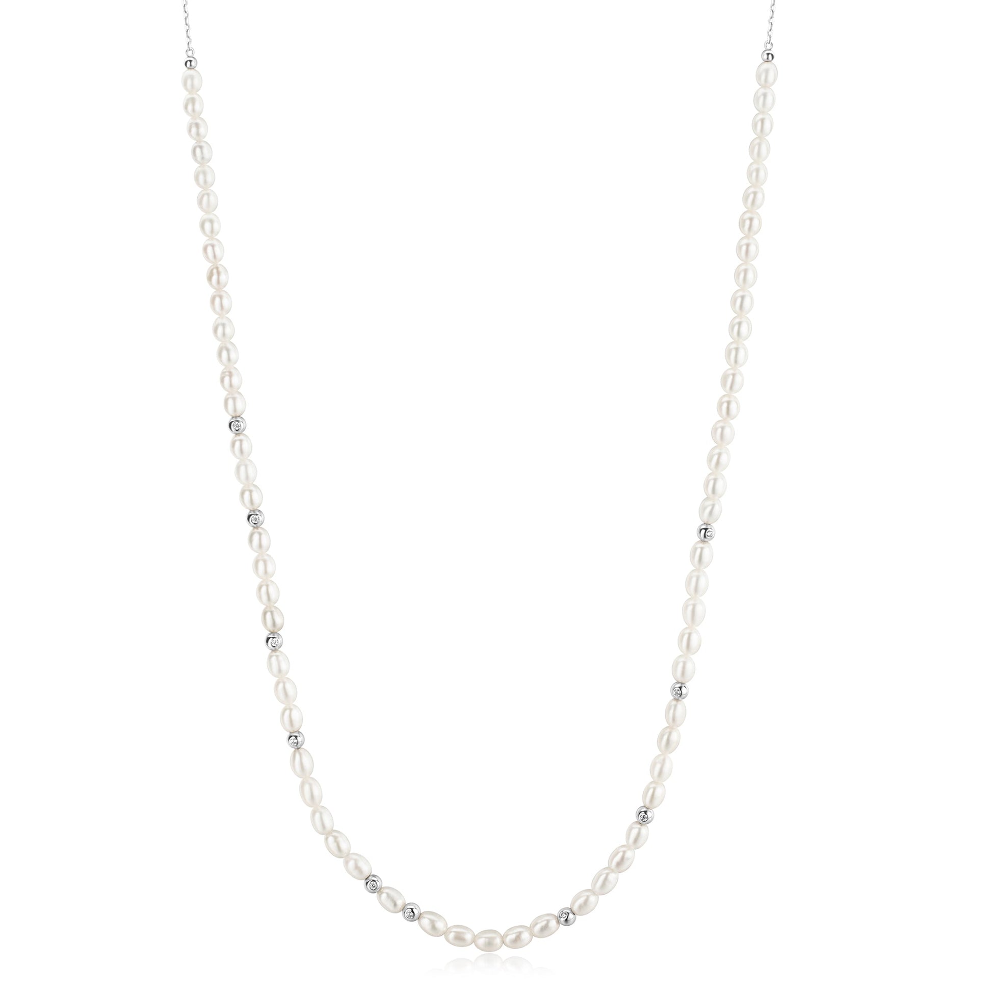 Ania Haie Silver Freshwater Pearl and White Cubic Zirconia Bezel Set Slider Necklace