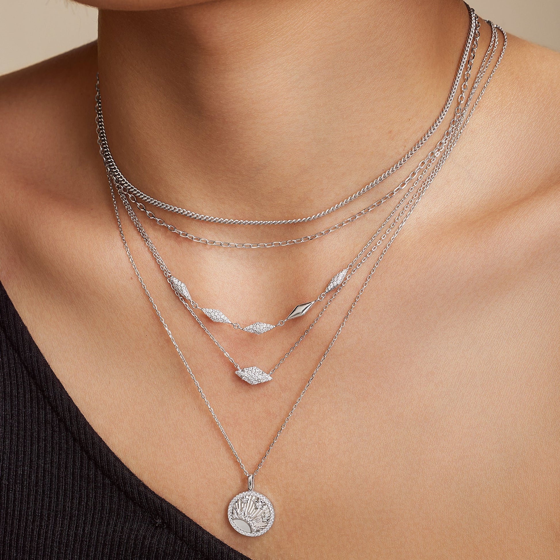 Elevate your layered look with this dainty necklace, featuring a striking rhombus pendant as its centerpiece. Stack it up with other chains to complete the look.