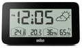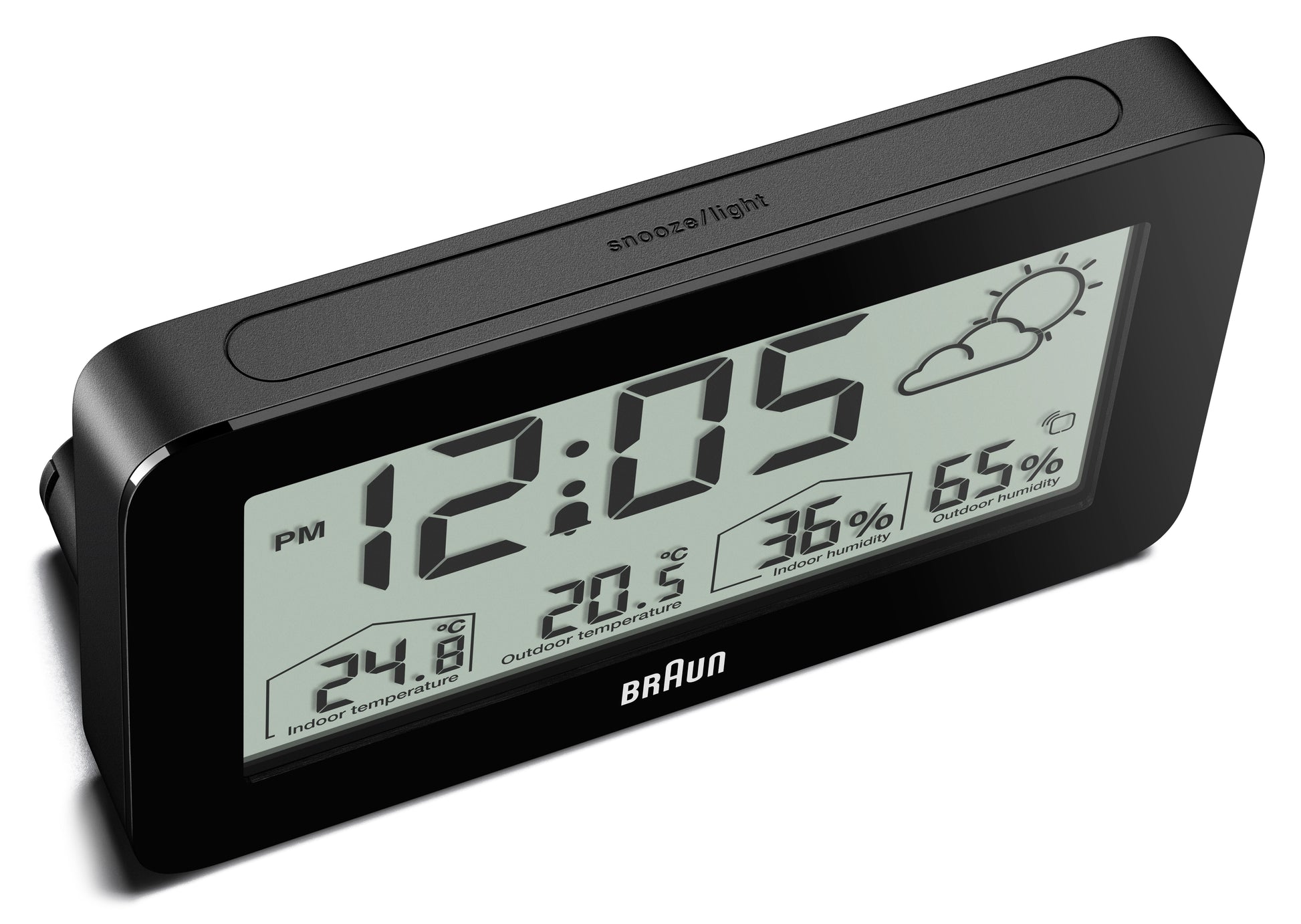 This Braun digital weather station features a positive LCD display with a continuous backlight function that illuminates the display when in a low-light environment to maximise legibility at night. The BC13 can be set to either 12 or 24 hour mode, and displays the time, The BC13 has a customisable interface that can display indoor and outdoor temperature (°C or °F) and indoor and outdoor humidity. The outdoor sensor also features a temperature display.