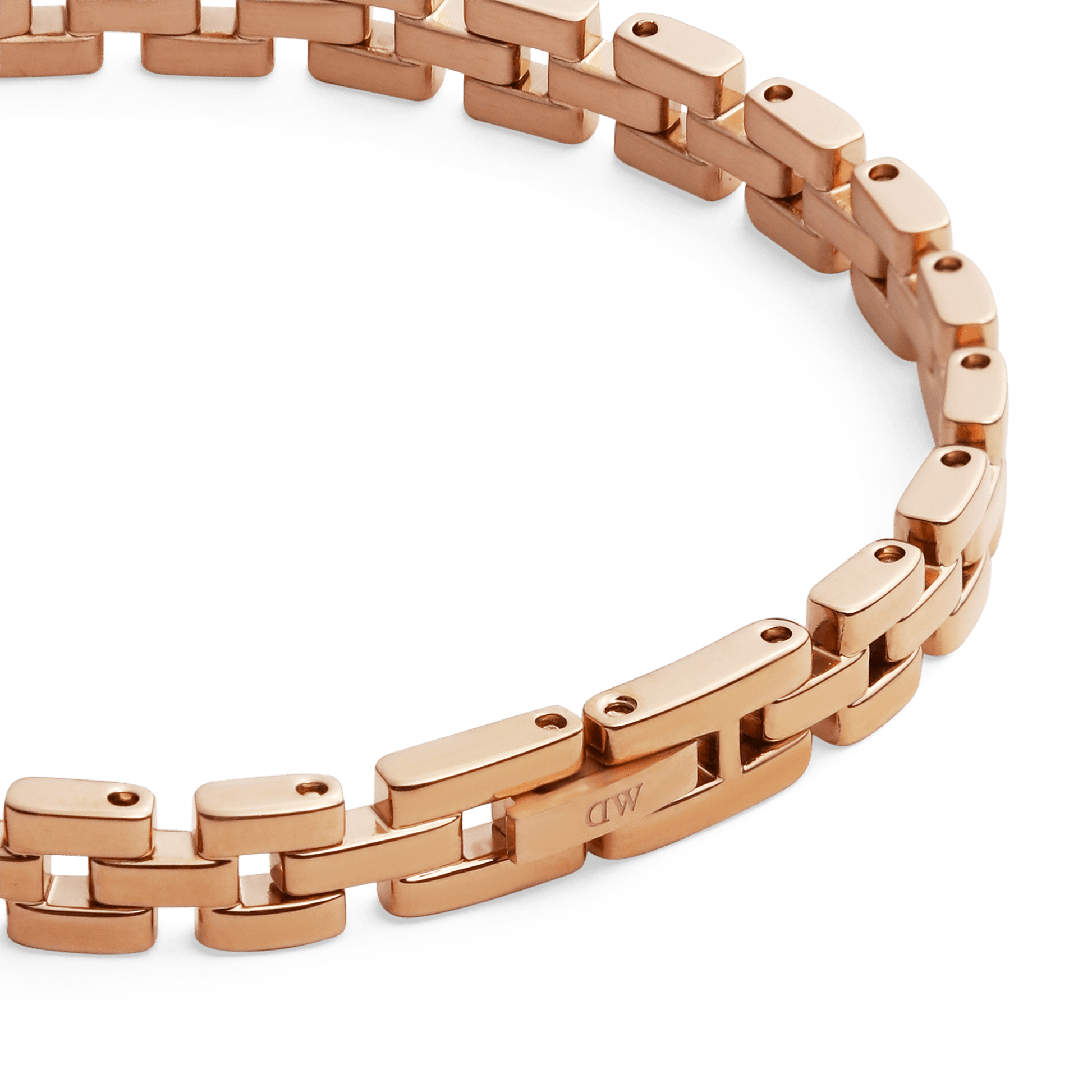 This gold bracelet was designed to match the aesthetic of the Daniel Wellington link watch straps—but in a smaller, more jewellery-like form. Daniel Wellington kept the proportions intact while introducing subtle gaps between the links for an even more refined look. Worn alone or perfectly paired with your favorite watch, the bold link design adds depth and movement to your wrist. Available in a fixed size.