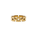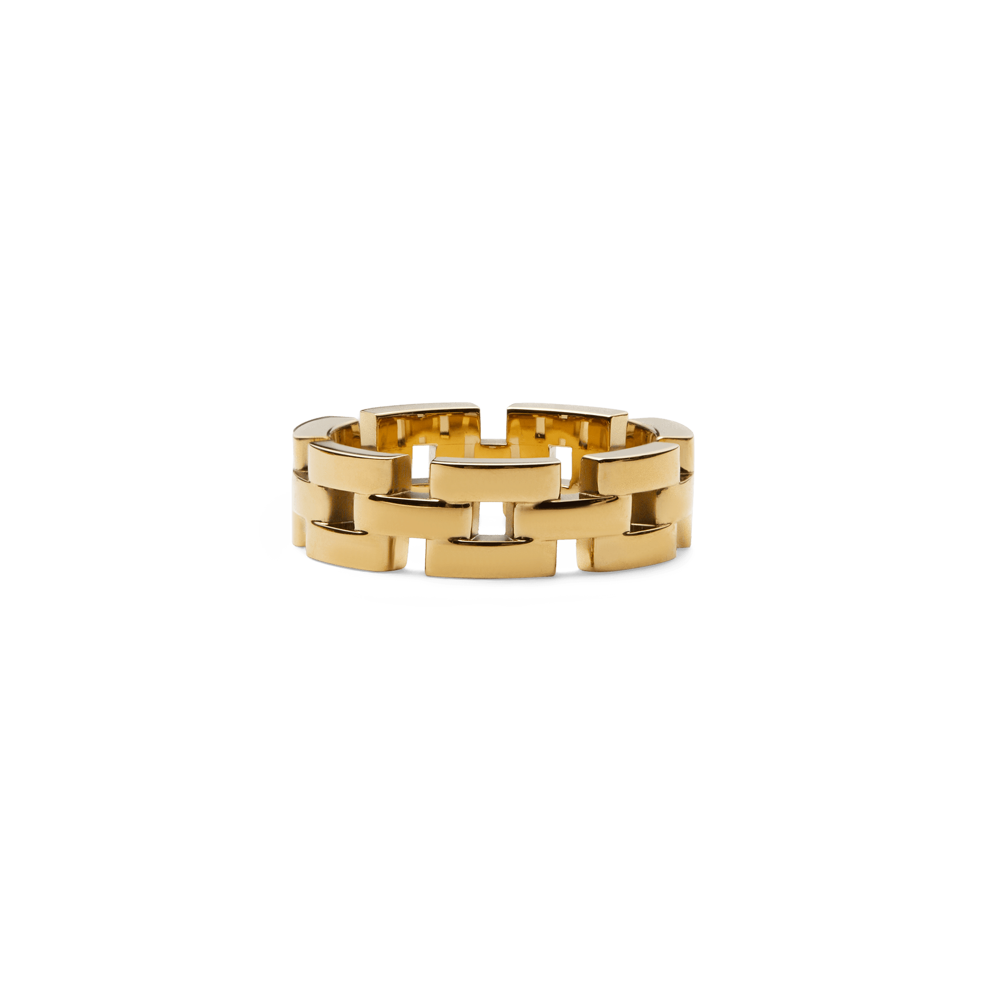 This gold ring was designed to match the aesthetic of our link watch straps—but in a smaller, more jewelry-like form. We kept the proportions intact while introducing subtle gaps between the links for an even more refined look. Worn alone or perfectly paired with your favorite watch, the bold link design adds depth and movement to your hand.