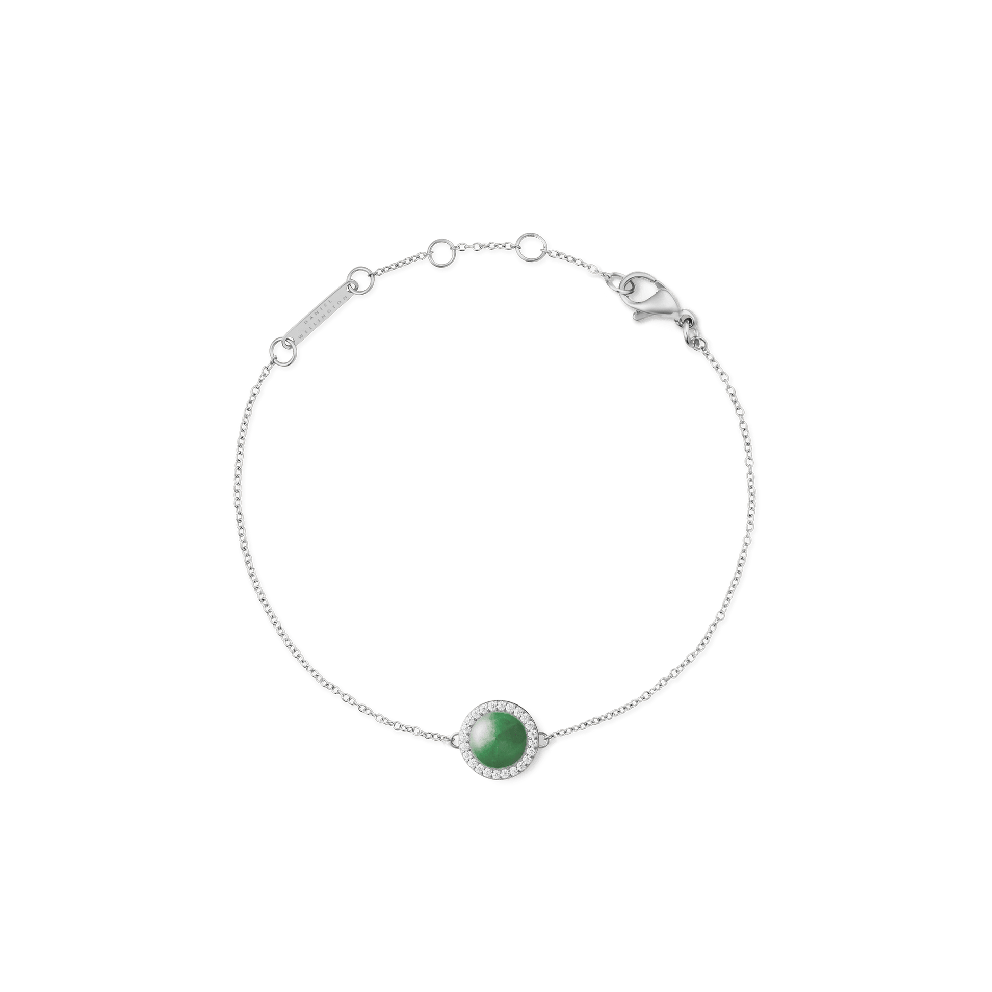 A thin row of white CZ crystals highlights the semi-precious stone in the Audrey bracelet to make it stand out even further. The whole is translated into a domed shaped charm bracelet that elevates your look to timelessly elegant. The bracelet is secured with a lobster clasp and allows for adjustable sizing. Semi-precious stones are a product of nature, and as such, variations in color, pattern, texture, and veining are inherent, as each stone is unique.