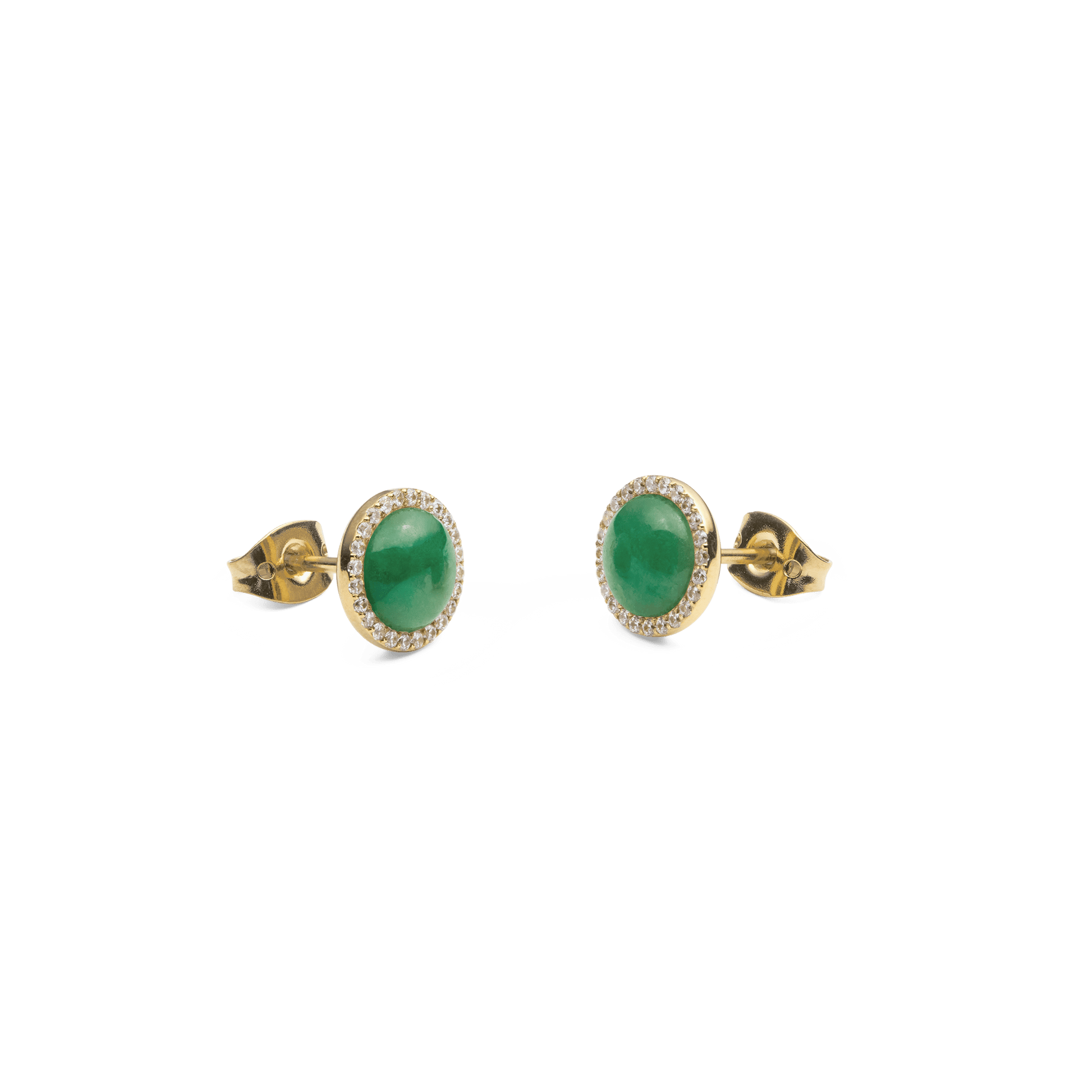 A thin row of white CZ crystals highlights the semi-precious stone in the Audrey earrings to make them stand out even further. The whole is translated into domed shaped earrings that elevate your look to timelessly elegant. Semi-precious stones are a product of nature, and as such, variations in color, pattern, texture, and veining are inherent as each stone is unique.