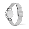 This statement piece hardly needs an introduction and this updated style of the loved Petite watch showcases a real mirror glass dial that perfectly complements its fully polished components. The new mesh strap, featuring a polished design, creates a seamless mirror effect throughout the watch. This design offers an exclusive yet playful expression, merging sophisticated elegance with a modern twist.