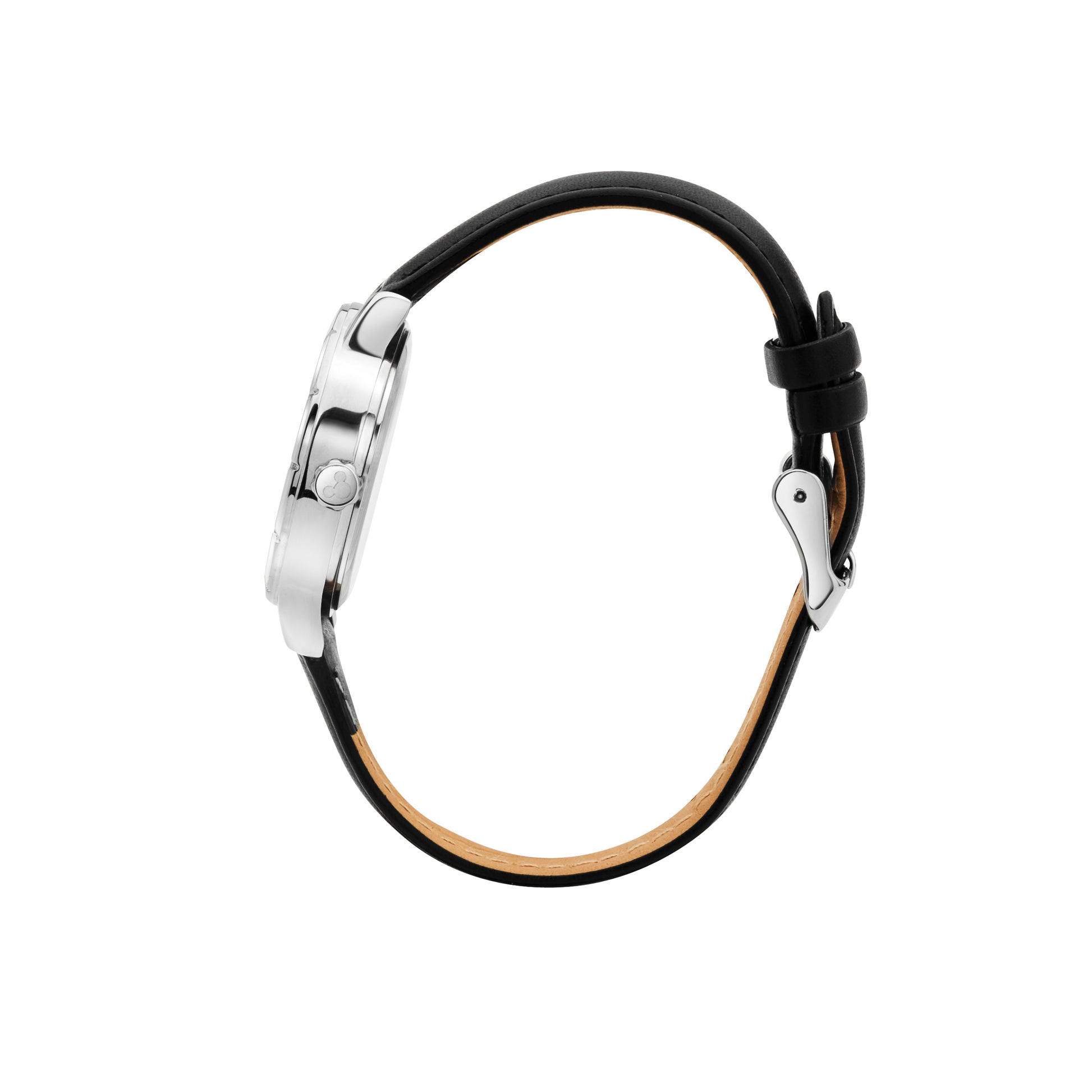 Disney presents classic style unisex watch from Original Mickey Mouse 90th Anniversary collection featuring mickey sculpted dial with moving mickey hands makes the perfect gift for Mickey mouse fan. The combination of silver case with hour marks around the case and soft black leather strap makes this match as unique as you are. This watch is also water resistant,so wear it worry free.