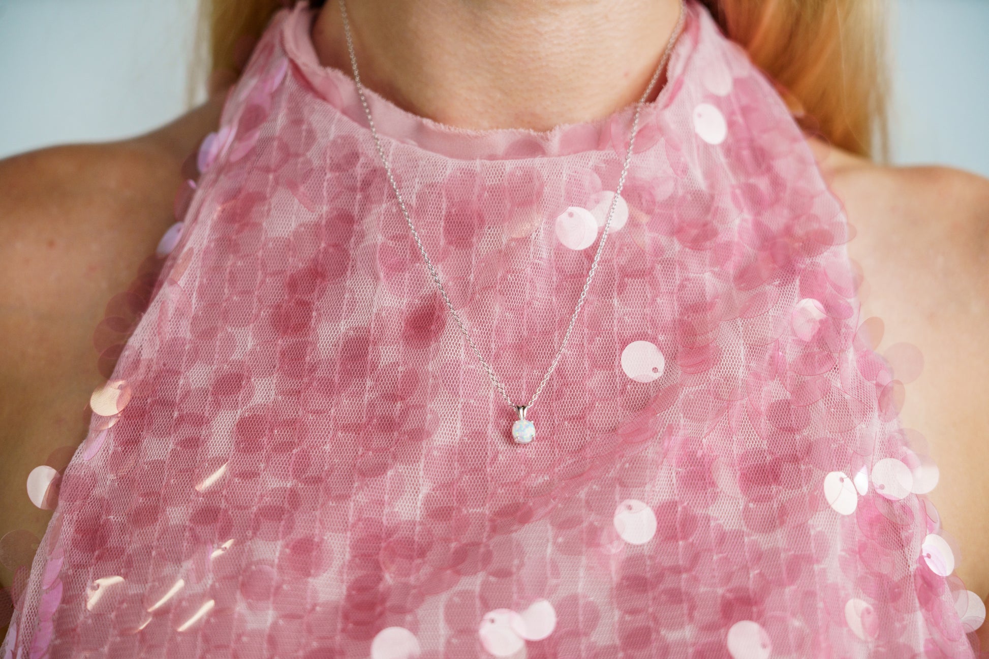 Simple, elegant, and effortlessly timeless—the Georgini Created Opal Pendant Gold features a delicate claw-set created opal, approximately 5 mm in size, that glows with soft, ethereal hues. Crafted from Rhodium Plated 925 sterling silver, it hangs gracefully from a 41 cm chain with a 5cm extension, offering versatile wear. This pendant pairs beautifully with the matching hoops or studs, creating a cohesive and sophisticated look perfect for any occasion.