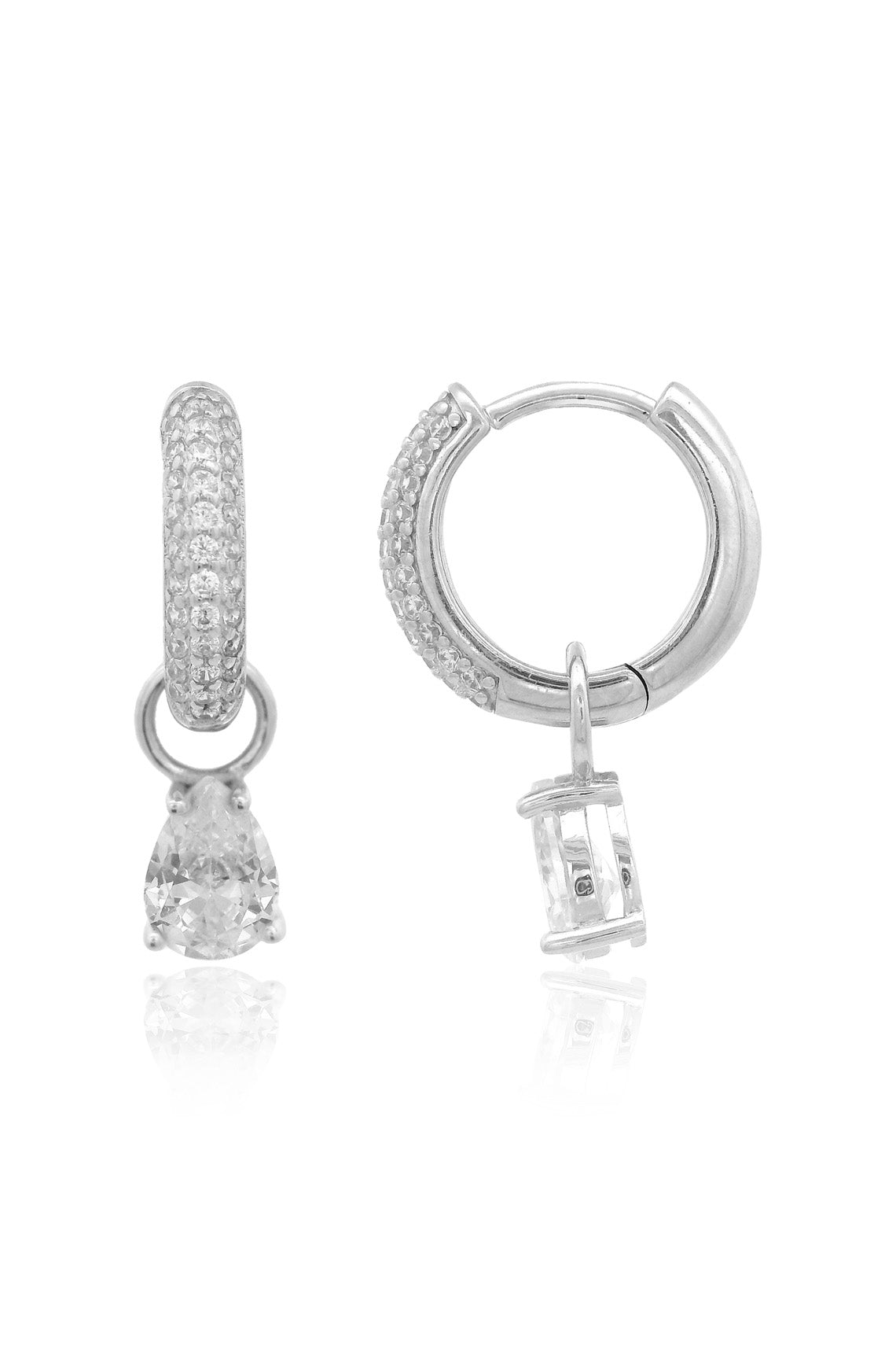 Crafted with care from Rhodium Plated 925 sterling silver, the Georgini Duo earrings are the perfect blend of elegance and versatility. Delicately designed, these earrings feature dazzling pear-shaped cubic zirconia charms (7 x 5 mm) that can be effortlessly removed to create two stunning looks. The shimmering pave-set cubic zirconia hoops, measuring approximately 12 mm, add a graceful sparkle that catches the light from every angle. Whether worn as a refined statement or a subtle shimmer, these earrings elevate any outfit with timeless charm and modern sophistication.