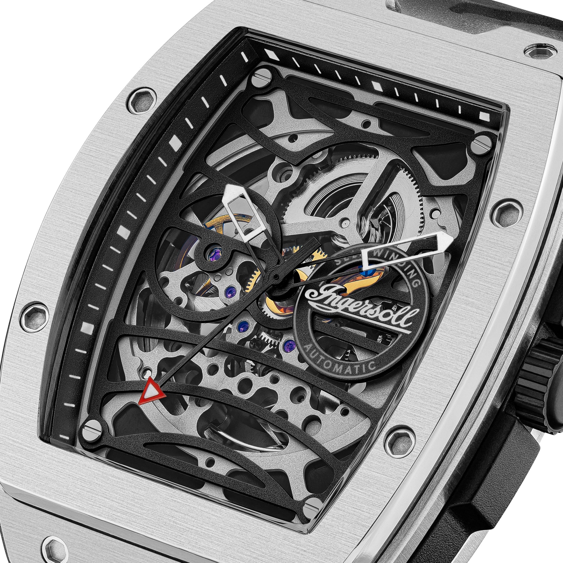Ingersoll 1892 The Challenger Automatic Mens Watch with Black/Silver Dial and Black PU Rubber Strap - I12301
