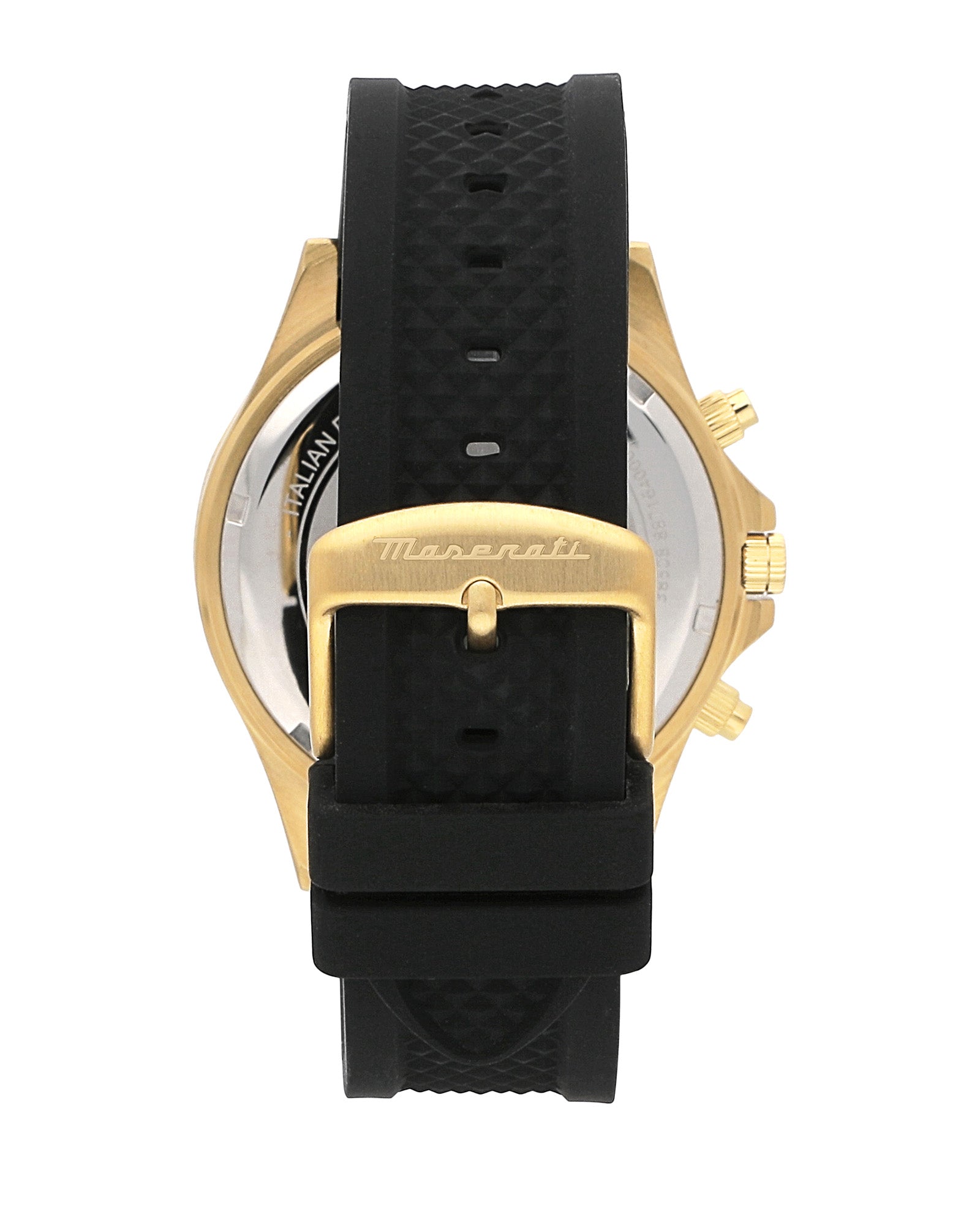 Our Maserati Sfida Chronograph is just what you need to get through the day. The chronograph tracks your progress so you beat any record that you set for yourself. An easy to read date window lets you know the day and date no matter where you are, keeping you on time for any moment. Luminous hands make the display easy to read, even at night, and with water resistance up to 100 meters, you can go for a swim without worry. Our Sfida watch designed after the sportiest elements of Maserati cars, making it perfect for any gentleman to wear with any formal or casual outfit.