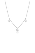 The necklace features three floating cubic zirconia suspended on the rhodium-plated 925 sterling silver chain, mirroring the design language found in the earrings of the collection. The rhodium plating not only enhances the beauty of the necklace but also provides added durability and resistance to tarnish, showcasing Georgini's dedication to quality and longevity.
