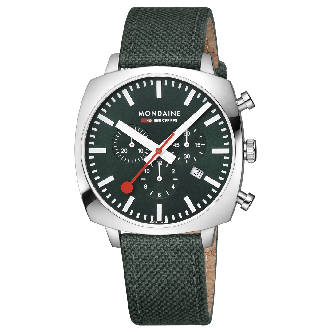 Mondaine Official Swiss Railways Grand Cushion 41mm Forest Green Watch Set