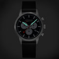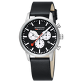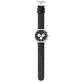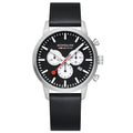 This sophisticated and masculine chronograph reverses the classic panda dial featuring a black dial with white sub-dials whilst seamlessly fusing this with the iconic Swiss Railways station design. The chronograph with a 41mm brushed stainless steel case introduces a new case shape unique to this line and is equipped with a date display and chronograph function allowing the wearer to track the date and measure elapsed time with precision. The top of the hands is equipped with Super-LumiNova® ensuring that time can be effortlessly read, regardless of the ambient light. The dial is protected by sapphire crystal with anti-reflective coating, a strong and scratch resistant material and is paired with a black vegan grape leather strap. Make a statement with this sophisticated and classic timepiece!