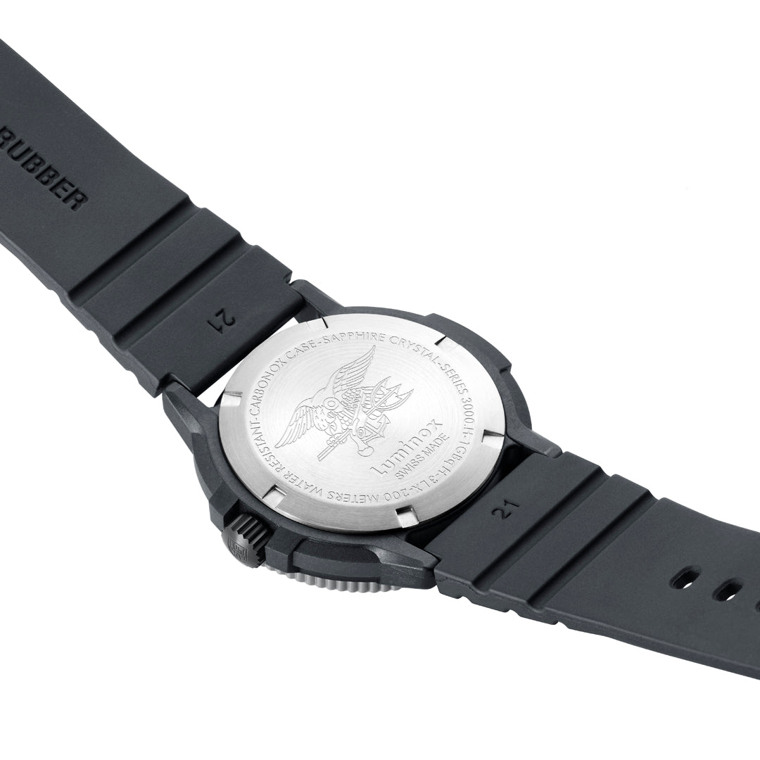 The Luminox 3000 Heritage wristwatch celebrates the 30th anniversary of the iconic, original Navy SEAL. With a strong resemblance to the much-loved original, the timepiece is enhanced with sapphire crystal glass and an anti-reflective coating, a Swiss Quartz ETA movement and a stainless steel uni-directional bezel for increased durability and a sleek, modern look. To celebrate this landmark anniversary in the brand's history, the 30 on the bezel is coloured in a classic Luminox red. This robust Navy SEAL timepiece comes equipped with 200 meters water resistance and our signature CARBONOX™ case, ensuring unrivalled durability wherever you take it. As Luminox celebrates its rich history, this extraordinary timepiece marks a chapter in a legacy built on precision, innovation, and an enduring partnership with the world's most elite force.