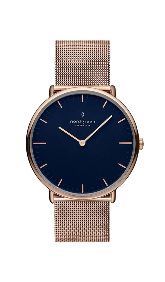 The Nordgreen Native 32mm Rosegold Mesh Strap Watch—a stunning combination of minimalist design and luxurious flair. With its elegant rosegold finish and refined mesh strap, this watch is the epitome of sophistication, perfect for elevating any look with effortless style.