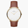 Nordgreen Native 36mm Yellow Gold Case Brown Leather Strap Watch