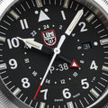 - Strap / bracelet: Brown leather strap, stitched, with Luminox signature buckle