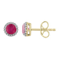 Ruby Earrings with 0.05ct Diamonds in 9K Yellow Gold