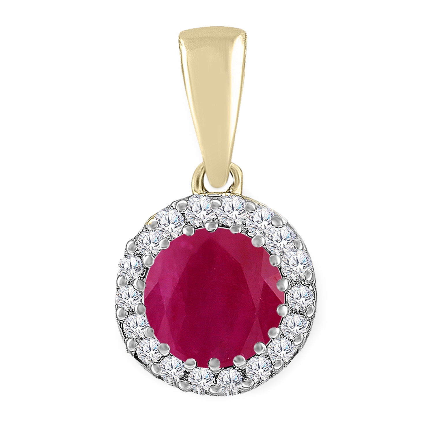 Ruby Pendant with 0.03ct Diamonds in 9K Yellow Gold