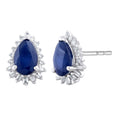 Sapphire Pear Earrings with 0.12ct Diamonds in 9K White Gold