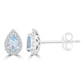 Simply stunning, this pair of aquamarine stud earrings set in 9K white gold is made up of 36 stones, a total diamond weight of 0.1 carats which form an elegant pear shape.