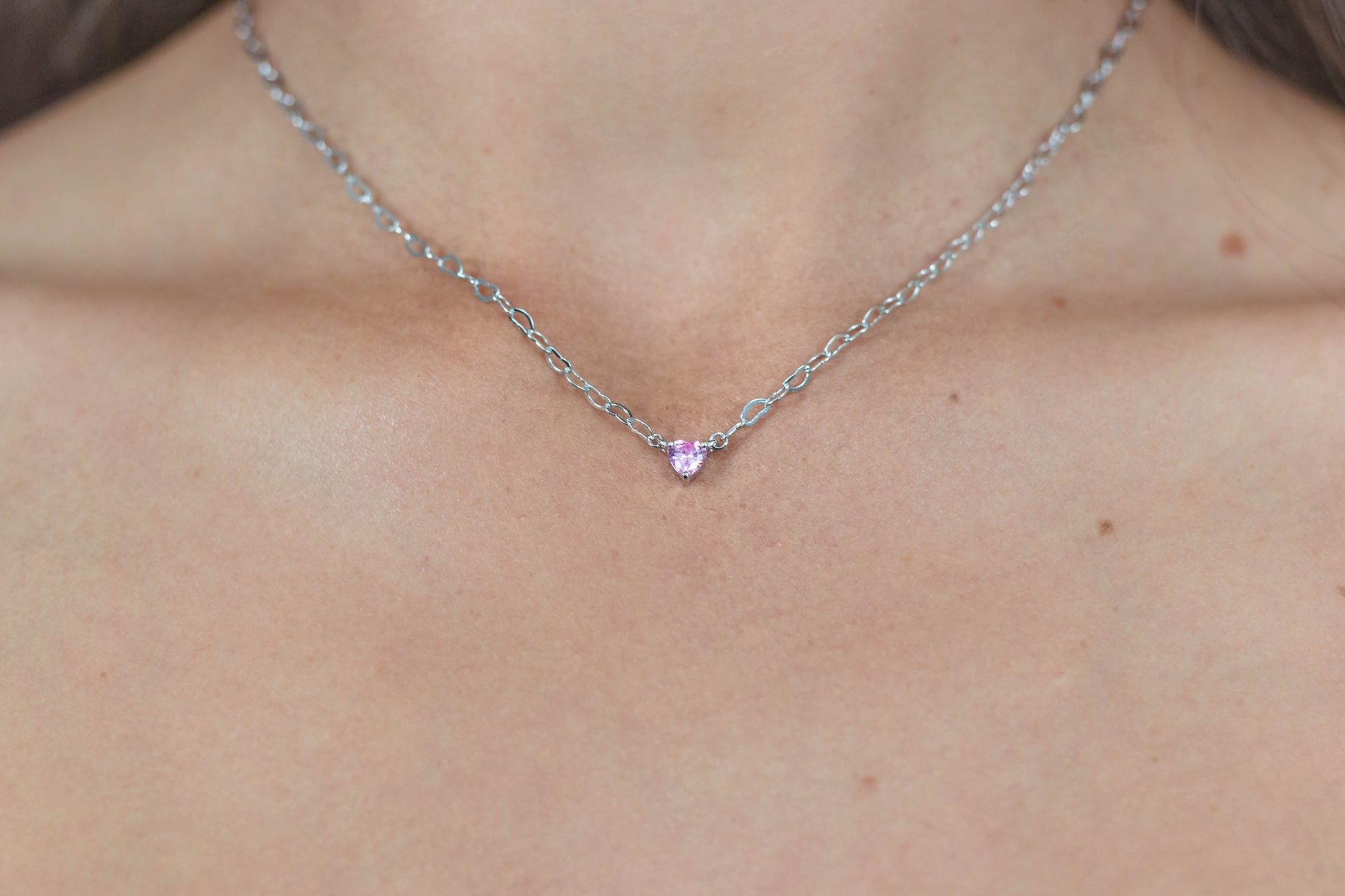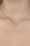 SWEETHEART HEART CHAIN NECKLACE PINK SILVER