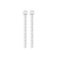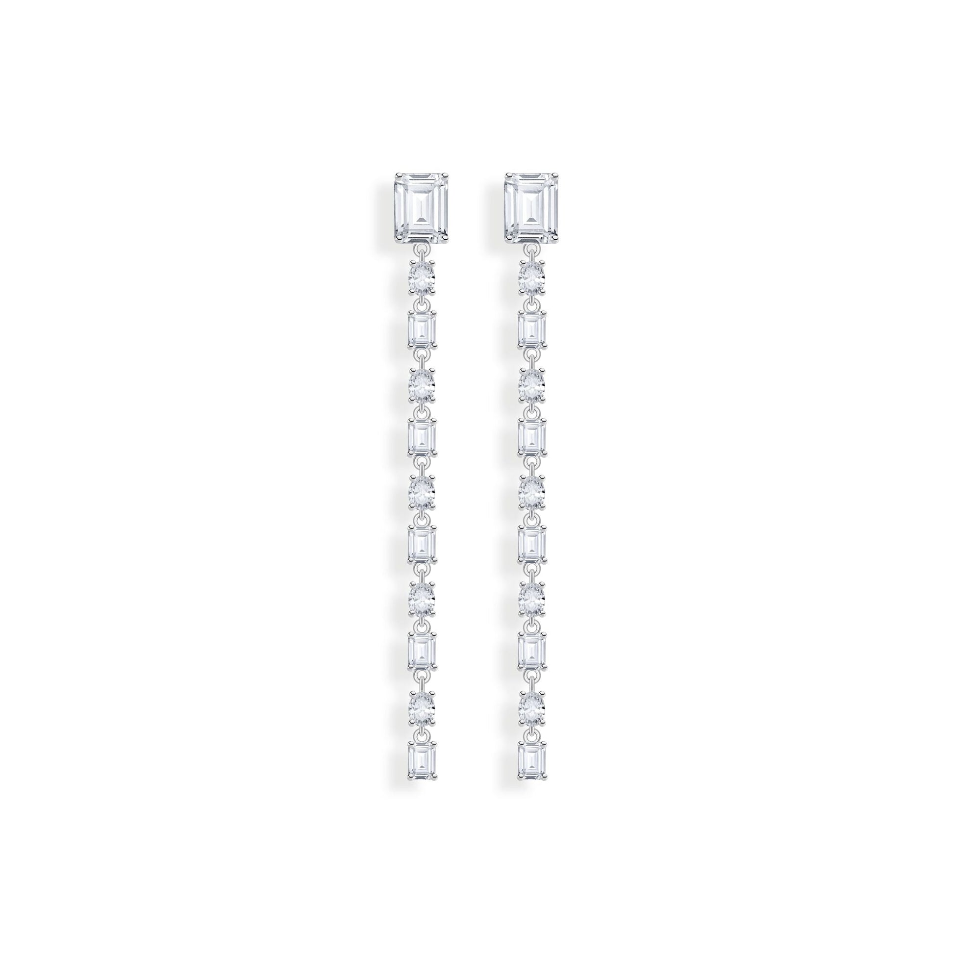 - Oval and rectangular white zirconia stones with sparkling facets fall elegantly from the ear studs