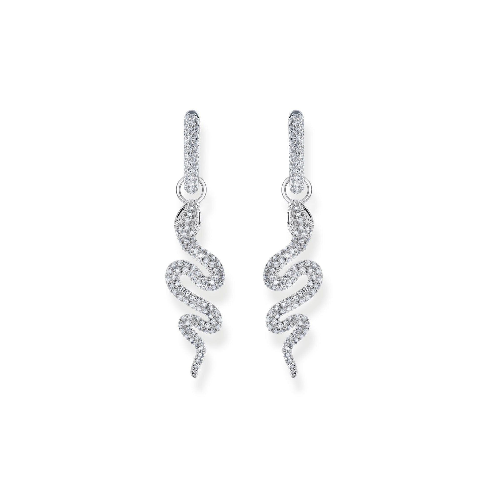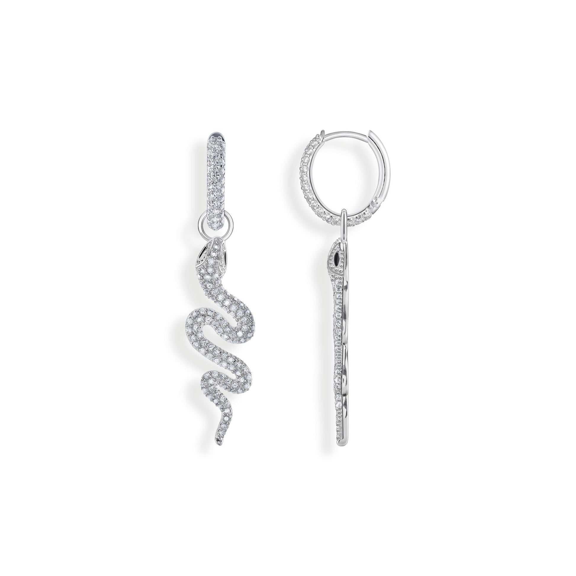 - Artful white zirconia pavé on the snake and on the front of the hoop earrings