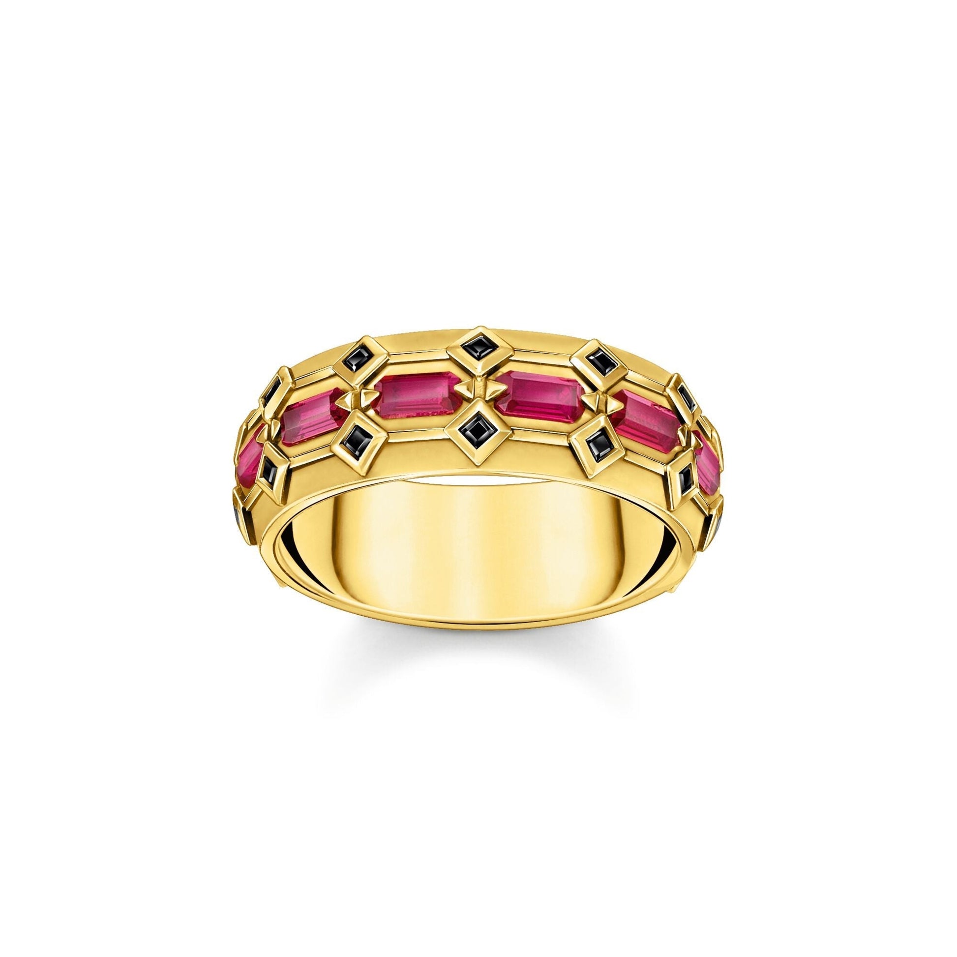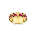 THOMAS SABO Wide Gold Plated Ring in Crocodile Design with Red Stones