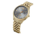 Constructed from stainless steel, the Camberwell watch is named after the borough in south London, known for its art markets and Goldsmiths College. With a round date window at the three o'clock mark, it features a grey dial and a chain-link strap that fastens with a butterfly buckle.